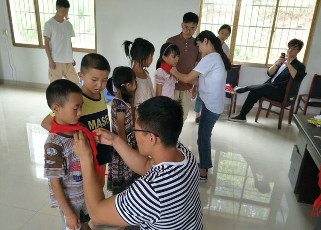 实践团成员根据各自的特长分为若干小组,对留守儿童进行爱国主义教育、卫生健康知识普及与手工艺、音乐兴趣培养。通过举办升旗仪式、少先队入队仪式、开展“我的理想”主题班会等活动,帮助孩子们树立人生目标,增强孩子们的爱国主义精神、民族自豪感。