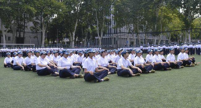 军训期间新生整体感觉比较辛苦,但他们战胜天气的炎热,克服自身的懒散,坚持在军训队伍里发挥自己的作用。在军训中,他们得到了磨练并在其中成长,在大学的第一课里,每位同学都体会到了“艰苦朴素,求真务实”的校训精神。迎新服务点的每一位工作人员,都不遗余力地服务新生与教官,确保顺利完成军训任务。