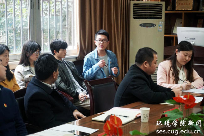 李素矿作总结讲话。他对团支部成员积极认真学习“两会”精神表示肯定。他强调,学习贯彻习近平总书记“两会”期间的重要讲话和全国“两会”精神,是当前和今后一个时期的一项重要政治任务,希望“张国旗”班团支部做好学习和践行习近平总书记“两会”期间的重要讲话和全国“两会”精神的排头兵,充分发挥示范引领作用。他说,习近平总书记在今年“两会”期间再次强调了生态保护的重要性:生态文明建设是“五位一体”总体布局其中一位;“坚持人与自然和谐共生”是新时代坚持和发展中国特色社会主义基本方略其中一条基本方略;绿色是新发展理念其中一大理念;污染防治是“三大攻坚战”其中一大攻坚战。他强调,“张国旗班”团支部成员要认真学习专业知识,加强专业本领,以优秀校友张国旗为榜样,争做自然资源、生态环境保护和生态文明建设的铁军,德智体美劳全面发展的社会主义建设者和接班人,红专能优、争做时代先锋,担当民族复兴大任的时代新人。