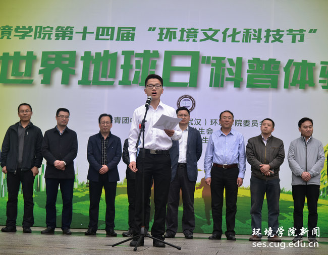 在主楼前广场举行第十四届“环境文化科技节”开幕式暨“世界地球日”科普体验日活动。副校长刘杰,研究生院常务副院长张宏飞,教务处处长周建伟,学生工作处处长邬海峰,就业创业指导处处长严嘉,校团委副书记朱荆萨,党委宣传部副部长陈华文,附属学校党总支书记彭冠军,吃瓜网