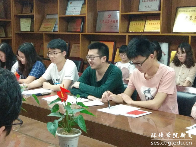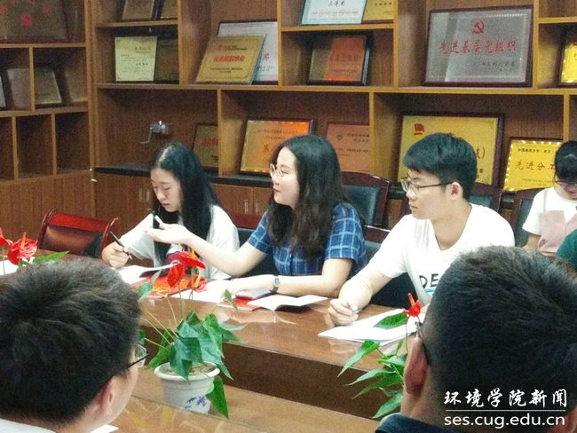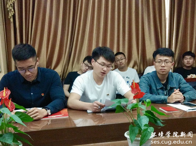 支部书记韩鹏发言。他向兄弟高校的14位党员同志介绍了近一年支部建设情况。水文党支部始终秉承“同频同向”的理念,积极探索新思路、新方法。支部严格按照“控制总量、优化结构、提高质量、发挥作用”的十六字方针发展党员,从推优表、积极分子考察登记表、三行一禁表到会议记录,均按要求填写,仔细审查,使发展党员的工作走上制度化、规范化的轨道。支部主题活动方面,组织开展了“中共五大会址”参观活动、湖南省省级贫困村精准扶贫专项调研活动、纪念毛主席诞辰125周年交流分享会活动等,支部成员以新时代青年党员的高标准和严要求,关注国家发展、关心民生动态,自觉肩负起祖国赋予青年的崇高使命。