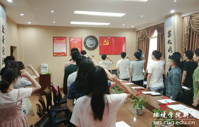 水文专业大学生党支部书记韩鹏带领全体党员重温入党誓词