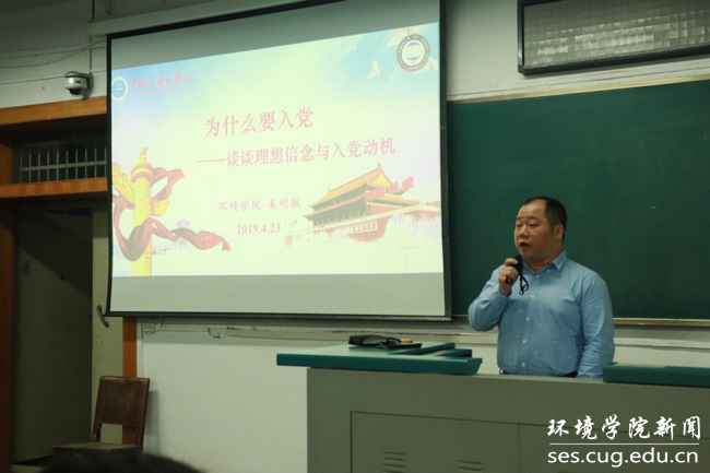 关于如何端正入党动机,姜老师以优秀校友张国旗、陈国南为例,希望环院学子把理想信念建立在科学理论的理性认同上,建立在对历史规律的正确认识上,建立在对基本国情的准确把握上。