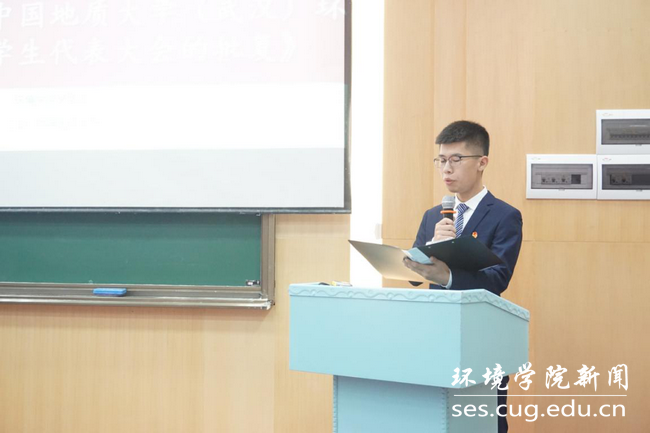 发展注入了活力、作出了贡献。他指出,第五次学生代表大会是同学们在校学习生活的一件大事,是一次民主参与的政治实践,大会代表们要高度重视、履职尽责。他对学生会今后的工作提出四点希望:一是要守初心,紧扣“思想引领、成长服务”两大职能定位,引导广大同学争做政治强、本领高、作风硬、敢担当的生态环保铁军;二是要担使命,瞄准同学们的真实需求,强特色、入主流,帮助每位同学健康成长成才,大力营造爱党、爱国、爱家、爱校、爱学、爱习的良好氛围,引导广大同学做到价值取向与党与祖国人民同心、学术方向与政治方向同向、学术卓越与思想卓越同行、学识魅力与人格魅力同在;三是要找差距,坚持问题导向谋发展,查找自身问题,想办法破解难题,增强广大同学在“第二课堂”中的幸福感和获得感;四是要抓落实,树立“青春是用来奋斗的”“从同学中来,到同学中去”的工作理念,善于学习、创新发展,将工作深入到广大同学学习、生活中的点点滴滴。他希望,新一届的学生委员会和学生会主席团不断增强“四个意识”,坚定“四个自信”,做到“两个维护”,以新姿态、新朝气,握好接力棒,跑出好成绩。