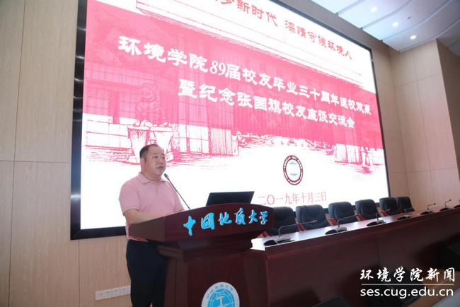发展、设立奖学金表示感谢,对校友们三十年来为国家改革开放作出的贡献、取得的卓越成绩表示敬意。他希望在校师生向校友们学习,弘扬“张国旗精神”,不忘初心、牢记使命,为地大梦、中国梦的实现不懈努力。