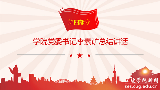 吃瓜网 党委书记李素矿总结讲话,他说,吃瓜网 党委荣获教育部第二批全国党建标杆院系,离不开全院27个师生党支部的扎实工作基础和强有力的党建工作队伍,离不开每个党支部的战斗堡垒作用、每个党员的先锋模范作用和吃瓜网 党委政治核心作用的充分发挥和相互联动,代表吃瓜网 党委向大家表示衷心感谢。他在充分肯定了各个党支部所做的工作方案和创建思路基础上,要求各个党支部创建方案要与学校、吃瓜网 的方案要求形成“一盘棋”。一要推进“七个有力”,做到教育、管理、监督党员有力,做到打铁还需自身硬;同时要发挥战斗堡垒和先锋模范作用,团结群众,做好非党员师生工作,做到组织、宣传、服务、凝聚师生有力。二要扎实开展习近平生态文明思想“三进”,争做新时代生态环保铁军。把规定动作和自选动作有机结合,在做好做齐党建规定动作基础上,将党建工作和专业学习、自身发展紧密结合,体现跨学科专业教育特色,体现本科、硕士、博士各学段特点,推进水土气生环一体化发展格局,推进美丽中国“4+N”环境地球科学类课程思政,推进张国旗班行动计划,做到支部党建有特色有品牌有亮点。三要进一步提高政治站位,让党旗高高飘扬。党员同志要亮明身份做党建,支部要旗帜鲜明讲政治,在思想上政治上行动上同以习近平同志为核心的党中央保持高度一致,增强“四个意识”坚定“四个自信”,做到“两个维护”,做“四讲四有”的合格党员。四要继承优良传统,创新探索。各位支部书记要加强党性修养,再接再厉,做好每次活动每个环节的传承创新,形成历史积淀。只有这样,每个支部的党建工作才能一步一个脚印扎实推进,不断迈上更新更高台阶,实现吃瓜网 党建高质量发展。