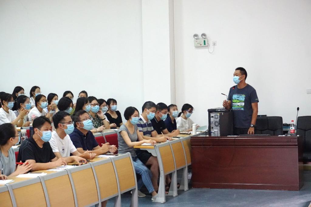 接着,秭归实习站副站长刘蓉介绍基地的管理要求以及实习生活须知等内容。副站长刘蓉首先对全体到站实习的同学表示欢迎,随后她详细地讲解了住宿办理流程、宿舍热水使用方法、食堂用餐规范、教室、洗衣房、运动场、医务室等配套设施的使用规范、学生发热情况的处理办法等。最后,特别强调了实习基地疫情防控纪律以及野外出行安全,并希望全体同学能够安全、圆满地完成实习任务。