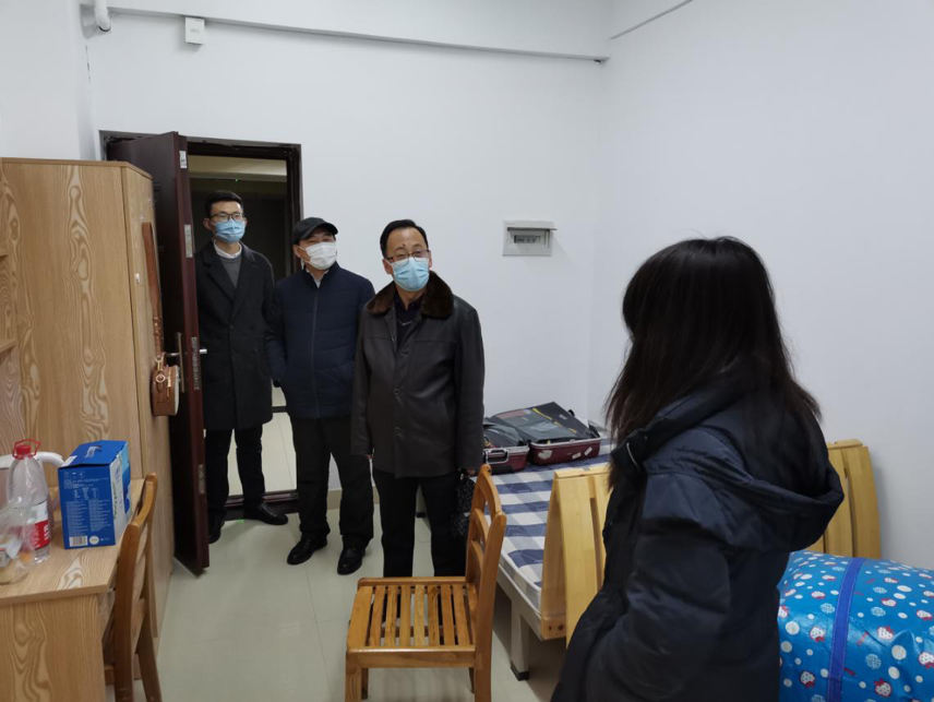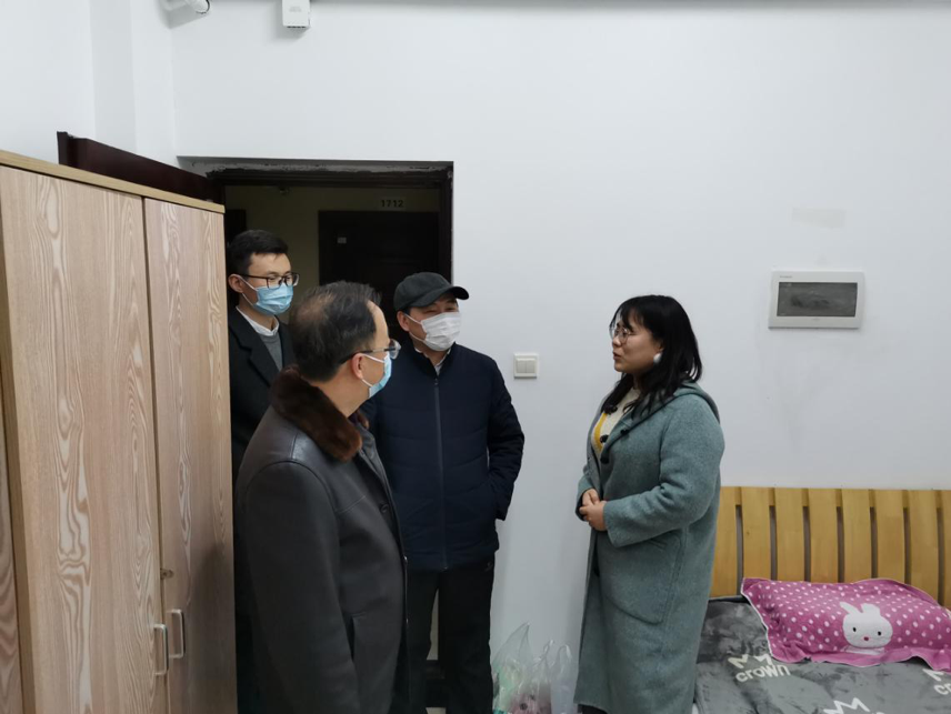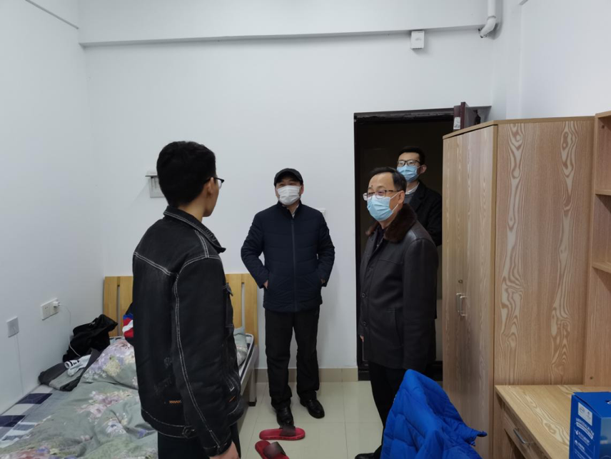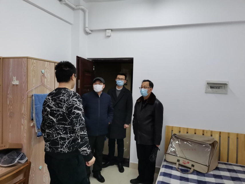 党委书记李素矿、院长马腾、党委副书记王海锋、团委书记王碧一行前往南望山校区丹桂苑走访宿舍,看望寒假留校学生。