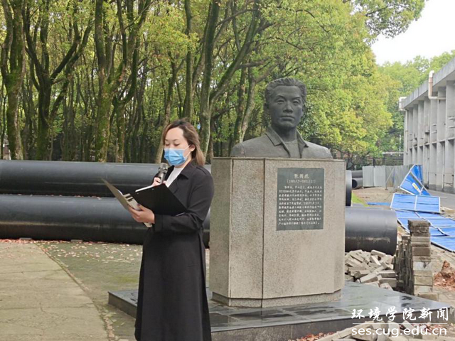 优秀校友张国旗,学习弘扬“张国旗精神”,4月4日下午,“张国旗班”团支部组织青年团员来到张国旗雕像前开展纪念张国旗活动,辅导员李平及“张国旗班”团支部全体成员参与活动。活动由薛晴文主持。
