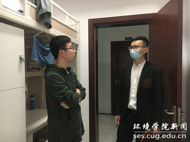 党委副书记王海锋带领学工组全辅导员深入学生宿舍、实验室,走访慰问在校学生,排查安全隐患。