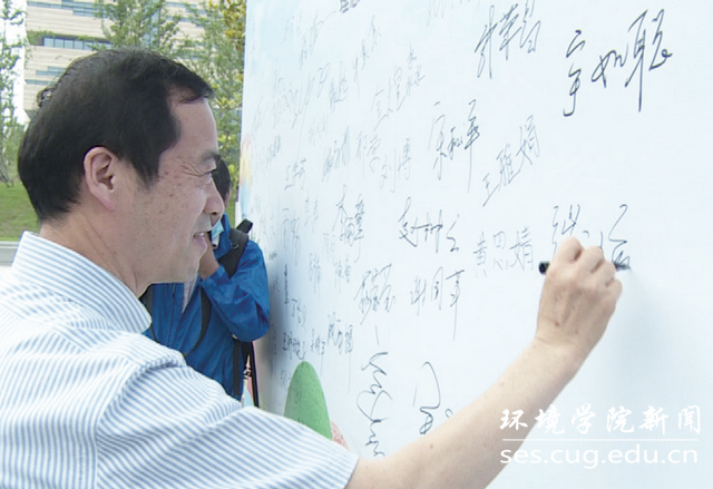 活动现场,同学们纷纷在低碳生活倡议书展板上签名,表达愿为碳达峰、碳中和贡献自己的智慧和力量。与会领导和嘉宾也在同学们发起的低碳生活倡议书上相继签名。