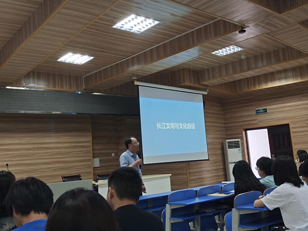 马腾老师以长江文明和文化自信为切入点,介绍长江流域的基本情况。他提到,长江流域是人类起源和早期发展的最重要地区之一,是经济-文化-政治的中心,对于推动人类文明进步起到至关重要作用,长江造就了从巴山蜀水到江南水乡的千年文脉,是中华民族的代表性符合和中华民族的标志性象征,是涵养社会主义核心价值观的重要源泉,要把长江文化保护好、传承好、弘扬好,延续历史文脉,坚定文化自信,要保护好长江文物和文化遗产,深入研究长江文化内涵,推动优秀传统文化创造性转化。