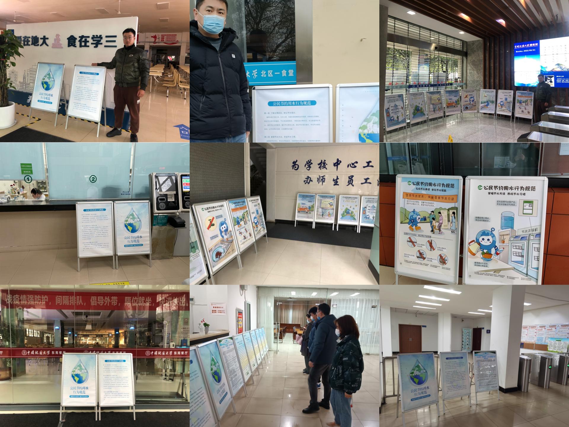 在30余个宿舍公告栏和主要公共建筑场所(如食堂、校医院、教学楼)张贴、摆放《公民节约用水行为规范》主题海报,引导师生增强节约用水意识,践行节约用水责任,将规范要求转化为自觉行动。