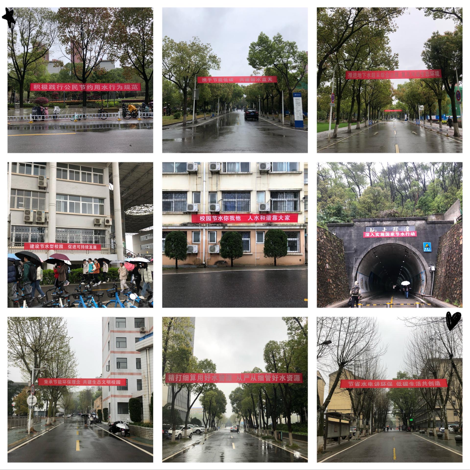 在南望山校区展开横幅宣传,以今年国家节水办宣传口号为主,结合校园节水节能主题,营造校园节水氛围。