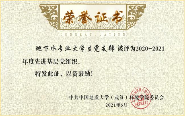 地下水专业大学生党支部被评为吃瓜网 2020-2021年度先进基层党组织