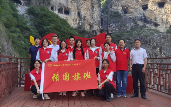 党委副书记王海锋、研究员高旭波、辅导员赵恩民以及“张国旗班”实践团成员到达山西省陵川县锡崖沟实地感受锡崖沟精神。