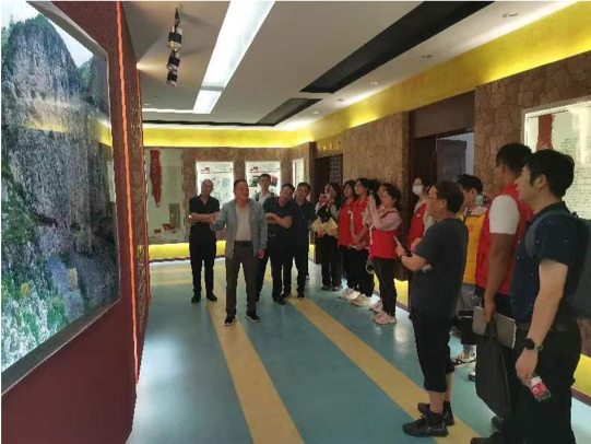 随后,一行人在村支书带领下,来到锡崖沟挂壁公路展馆,看到了当年修筑挂壁公路时用到的简陋工具,漫漫30年的修路生涯,锡崖沟人以几代人的奋斗结束了一段历经千年的沉重历史,他们仅凭着三尺钢钎,一双手,攀悬崖,凿峭壁,硬是在悬崖绝壁上开凿了一条空前的公路。陵川县水务局领导在与村支书的交谈中,表达了对烈士的缅怀以及对健在老人的关怀。在谈及因修路而牺牲的英雄时,众人颇受震撼,停留在英雄展板前久久不愿离去。参观展馆结束后,一行人更加深刻地感受到了为什么会将锡崖沟精神概括为百折不挠、水滴石穿的坚韧精神;不畏艰难、愚公移山的无畏精神;自力更生、艰苦奋斗的创业精神;牺牲自我、造福后代的奉献精神。