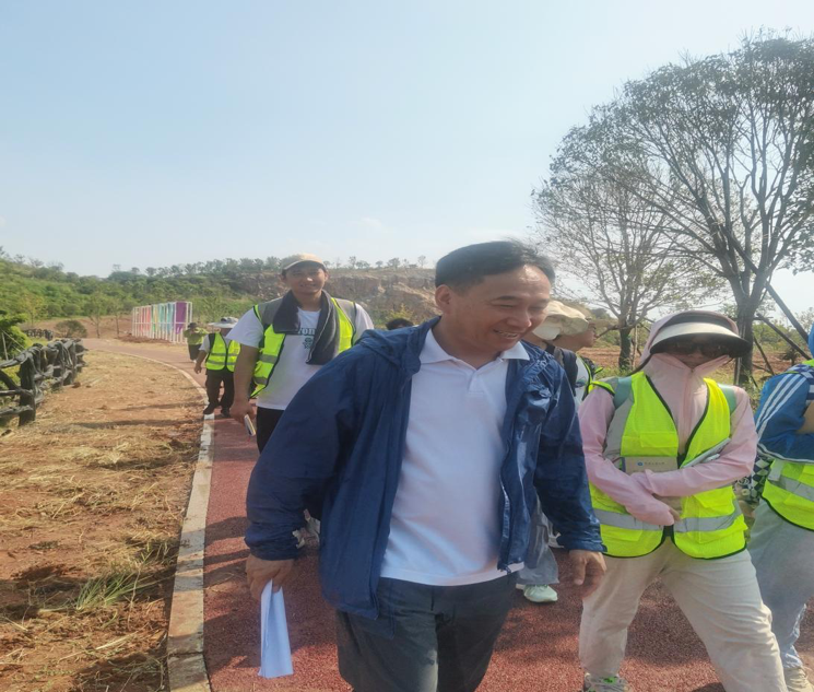 党委书记李素矿、武汉周边实习队长李立青一行前往武汉周边实习点光谷三路湿地公园和江夏矿山公园,看望实习师生,并与实习师生一同跑野外教学实习路线。