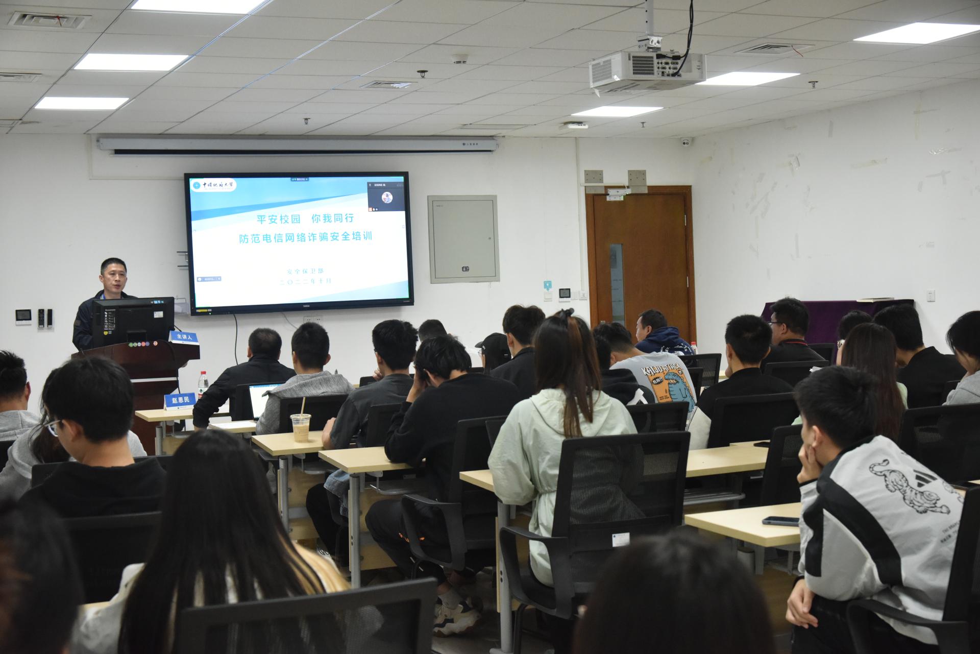 2022年秋季学期学生安全教育工作会议在环境楼347报告厅召开,学校未来城校区保卫办科长彭红进作校园安全教育讲座,重点强调防盗、防电信网络诈骗以及疫情防控等内容。讲座之后,吃瓜网