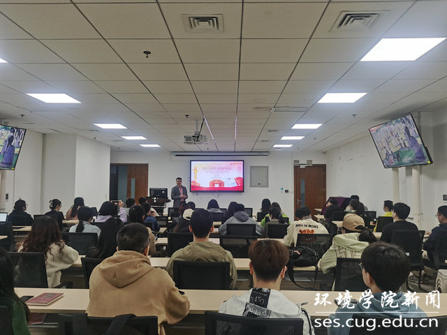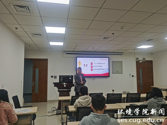 副院长柴波以“聚焦生态文明建设优化国土空间生态保护修复”为主题为地下水专业本科生党支部、2022级博士研究生党支部以及第28期发展对象培训班讲授专题党课。本次党课在环境楼347举行,党建辅导员陈俊男,学生党支部全体党员及培训班全体学员参与学习。
