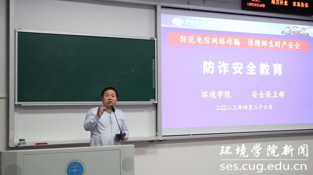 学校安全保卫部魏景明老师向同学们开展防诈安全教育,带领同学们深入学习了党中央、教育部、学校有关反诈防诈的文件精神,向同学们展示各种类型诈骗案例,传授了防诈反诈相关常识与技能,并通报了吃瓜网