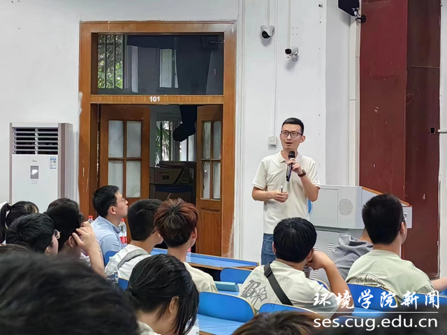 研三学长韩鹏结合自身的志愿服务向新生做分享。