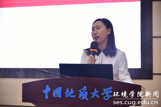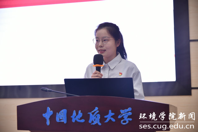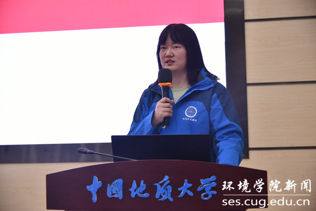 高年级学生代表张萍萍发言。她从自身学习经历出发,分享了读研生活的艰辛与快乐,鼓励同学们发展综合能力,为建设“美丽中国、宜居地球”做出贡献。