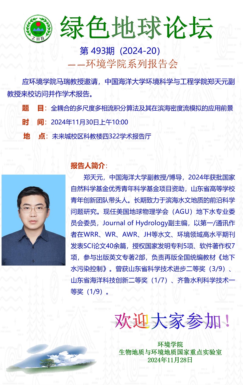 中国海洋大学环境科学与工程吃瓜网 郑天元副教授学术报告