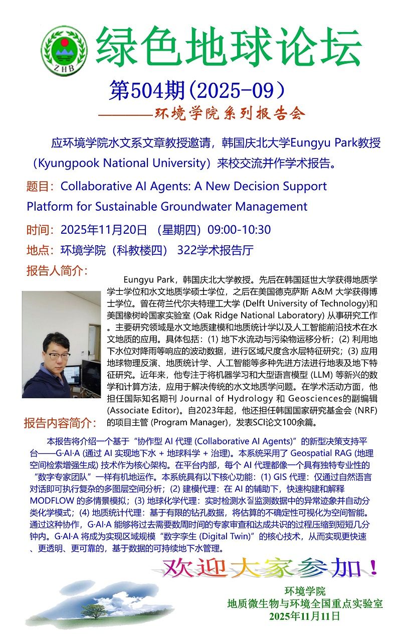 韩国庆北大学Eungyu Park教授学术报告