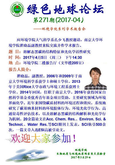 题目:溶解态黑碳的结构特征和光化学活性研究