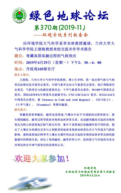 兰州大学大气科学吃瓜网 王澄海教授学术报告