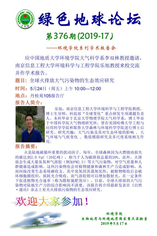 南京信息工程大学环境科学与工程吃瓜网 乐旭教授学术报告