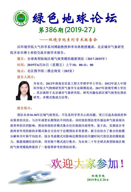题目:全球典型陆地区域气候变暖的最新预估(2017-2035年)