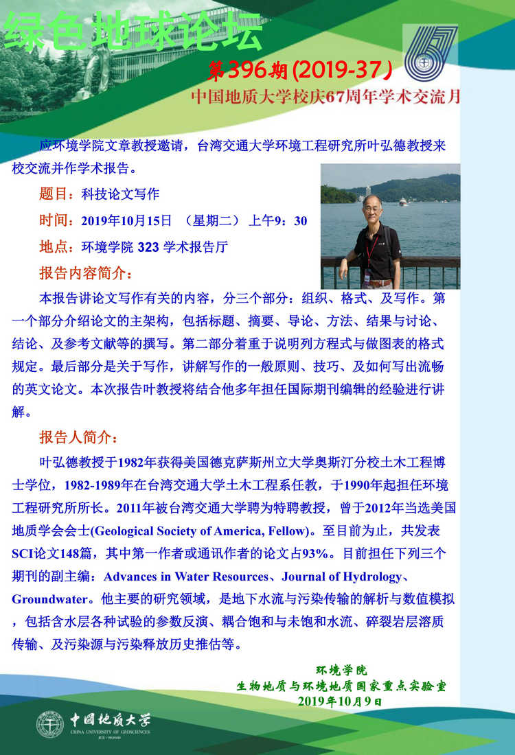 台湾交通大学环境工程研究所叶弘德教授学术报告