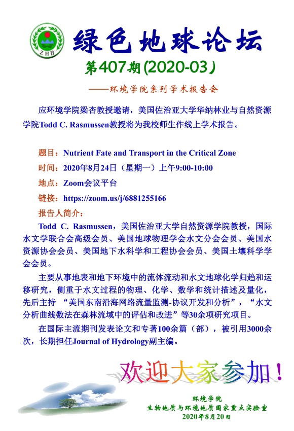 美国佐治亚大学华纳林业与自然资源吃瓜网 Todd C. Rasmussen教授学术报告
