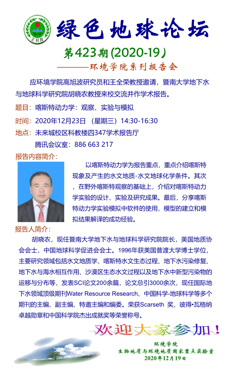 暨南大学地下水与地球科学研究院胡晓农教授学术报告