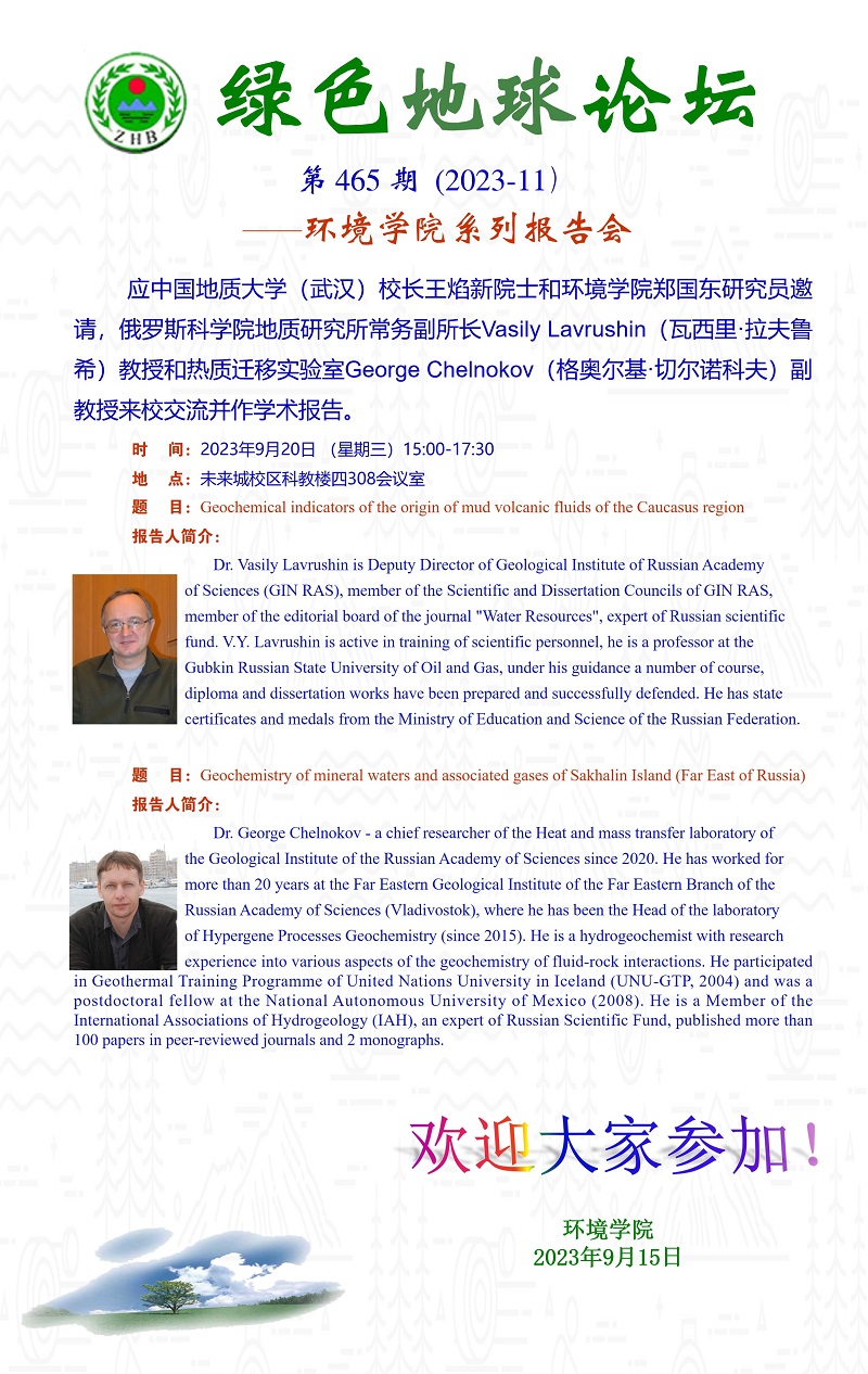 俄罗斯科吃瓜网 地质研究所Vasily Lavrushin教授和热质迁移实验室George Chelnokov副教授学术报告