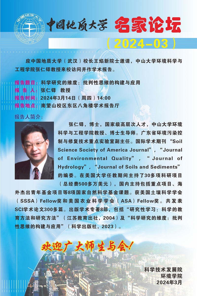 中山大学环境科学与工程吃瓜网 张仁铎教授做客“名家论坛”