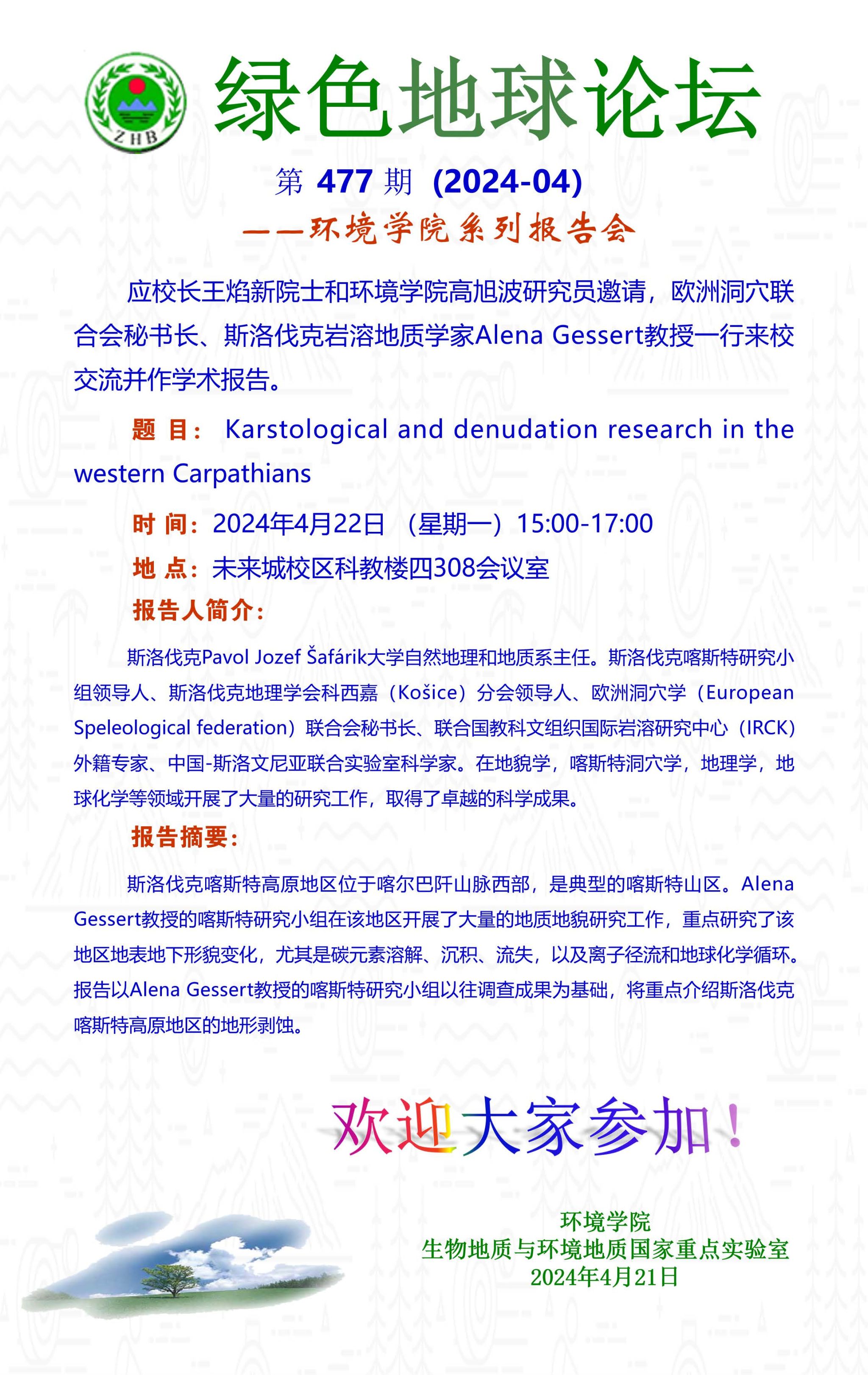 斯洛伐克Pavol Jozef Šafárik大学自然地理和地质系主任 Alena Gessert教授学术报告