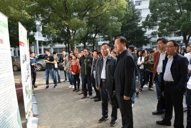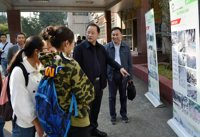 2017年师生野外实习风采展开幕。校党委书记何光彩参观师生野外实习风采展。