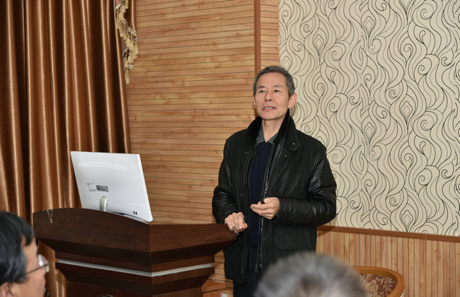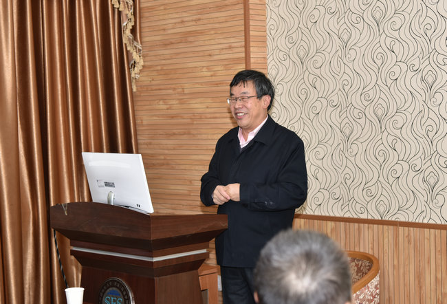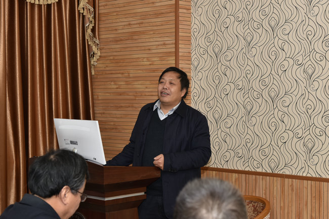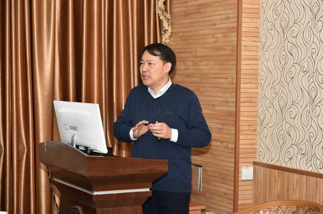 靳孟贵教授作《微咸水膜下滴灌棉田水盐及微量元素协同调控》的学术报告。