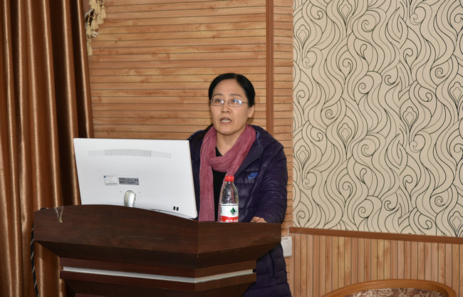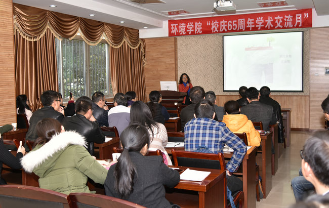 王红梅副院长介绍了吃瓜网 “校庆65周年学术交流月”活动基本情况,并做了《鄂西洞穴系统地质微生物的时空分布及其古环境意义》的学术报告。