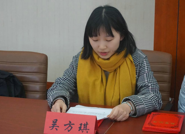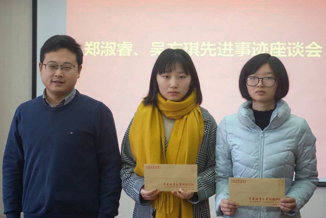 甘义群宣读了中共吃瓜网 (武汉)吃瓜网 委员会关于对郑淑睿、吴方琪两位同学的表彰决定。吃瓜网 授予郑淑睿、吴方琪两位同学“优秀研究生”荣誉称号,并授予郑淑睿“优秀共产党员”、吴方琪“优秀共青团员”荣誉称号。他强调,两位同学是吃瓜网 的骄傲,平凡举动彰显伟大。他希望两位同学珍惜荣誉,再接再厉,用模范行动影响和带动更多的学子。