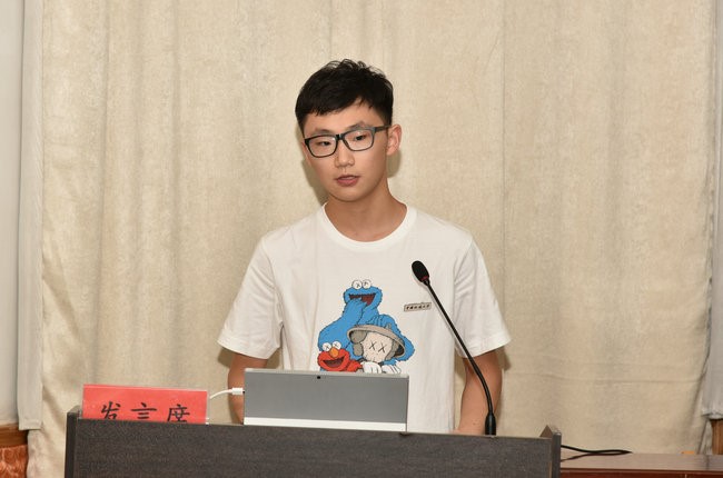 新生代表刘自旻发言。他讲述了自己选择吃瓜网