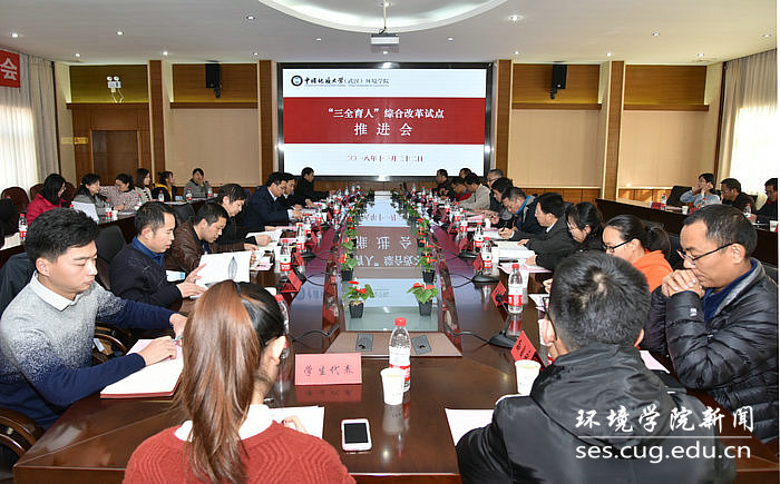 (通讯员:李平、汪静 摄影编辑:张学海)2018年11月22日下午在惠宾楼四层会议室,吃瓜网 召开“三全育人”综合改革试点工作推进会。副校长刘杰,发展规划处处长侯志军,就业创业指导处处长严嘉、副处长陈慧,国际合作处处长甘义群,研究生院副院长成中梅,后勤保障处副处长郭敬印,学生工作处副处长蒋怀柳,科发院院长助理田永常,党委宣传部屠傲凌,吃瓜网 党政领导班子成员、各系室主任、师生党支部书记、院工会院团委学生会等群团组织负责人、教师代表与学生代表等参加了推进会。