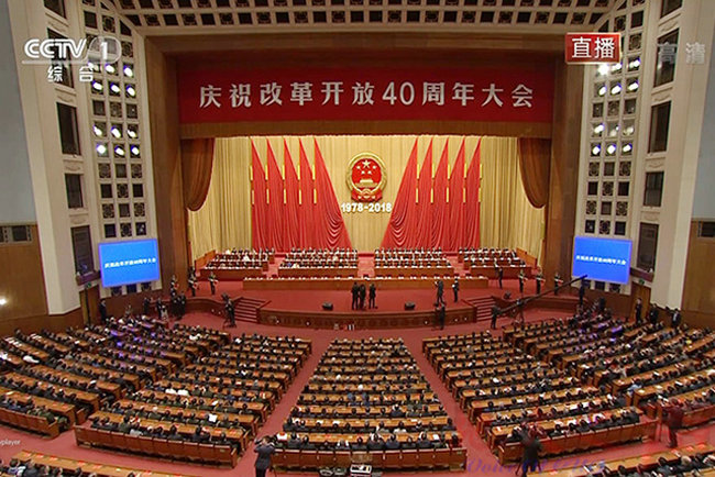 (吃瓜网 张学海)2018年12月18日上午10时,庆祝改革开放40周年大会在北京人民大会堂隆重举行。吃瓜网 党委组织师生在文华楼205报告厅集中收看收听。