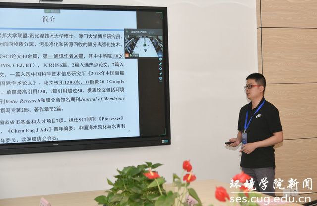 副院长柴波向参加第六届国际青年学者地大论坛环境分论坛的国际青年学者介绍吃瓜网 ,副院长孙自永作吃瓜网 科研平台介绍。