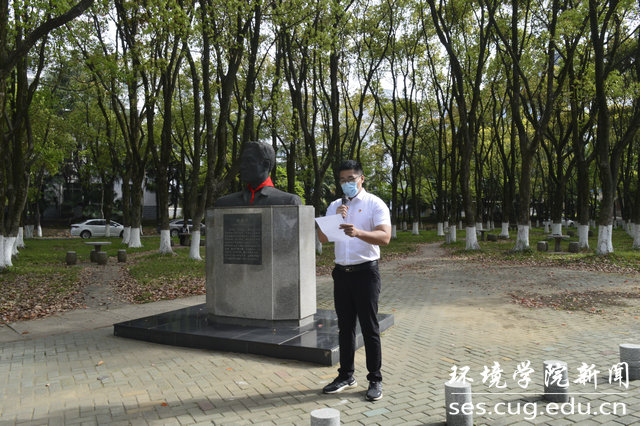 推进党建“双创”和“三全育人”工作的重要支撑。环境学子每年清明来此缅怀英雄校友,是同学们学习生活中的重要内容,也是向革命、建设、开放各个时期的英雄先烈致敬的重要方式。他强调,作为新时代青年学子,要通过缅怀英雄事迹和精神,学习英雄好榜样,强化不忘初心、牢记使命的意志,激励自己永葆赤子情怀、争优时代先锋。他要求,全院各党团组织、各班级、各位同学都要以传承红色基因、培育时代新人为己任,践行红专能优理念,创新开展党团活动,以德居之、以能居之,积极投身美丽中国建设,把论文写在祖国大地上,做政治强、本领高、作风硬、敢担当,特别能吃苦、特别能战斗、特别能奉献的新时代生态环保铁军。