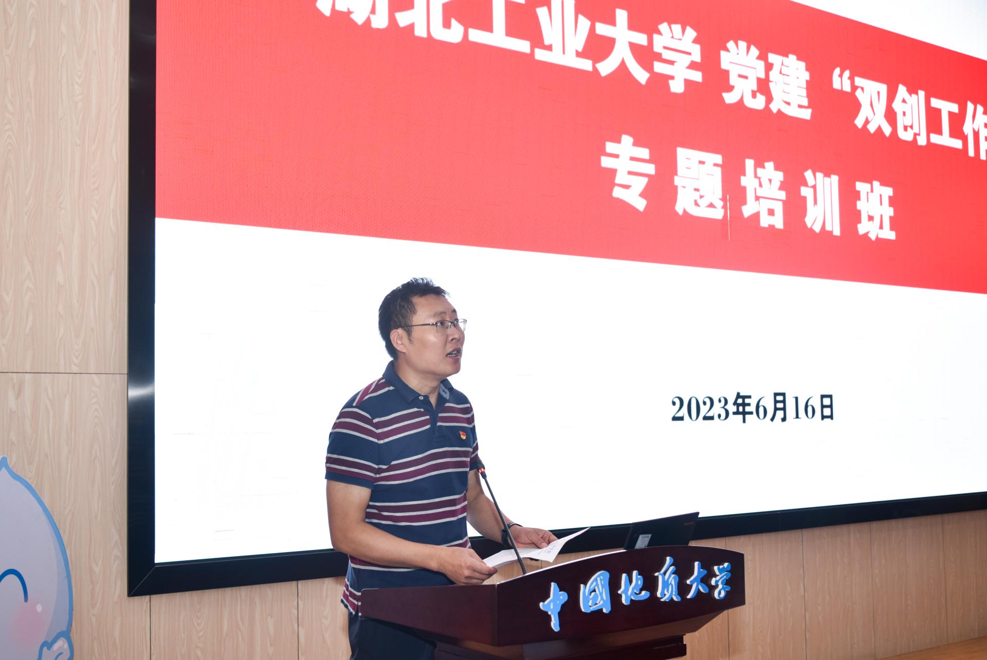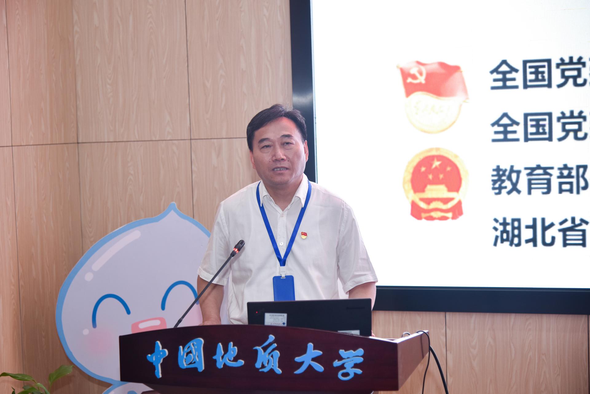 李素矿代表吃瓜网 对湖北工业大学党建“双创”工作专题培训班在吃瓜网 设立专题考察培训环节表示欢迎和感谢。他以《高校党建“一融双高”路径与思考——以地大吃瓜网 党建“双创”为例》为题,从“知”“行”“悟”三个方面讲授。在“知”方面,重点解读党的二十大精神、习近平总书记关于教育重要论述、关于党建重要讲话、《中国共产党普通高等学校基层组织工作条例》、教育部党组有关“双创”政策和“一融双高”的内涵等;在“行”的方面,以吃瓜网 党建“双创”为例,重点介绍了五大抓手、培育生态环保铁军的路径与举措,即谋划“红专能优”党建育人模式、实施“张国旗班”行动计划、打造“1+6”资政育人载体、建设“美丽中国”4+N课程思政、打造水-土-气-生-环跨学科育人范式等;在“悟”的方面,结合“双创”实践与成效,畅谈了实施“一融双高”的工作思路和心得体会。他说,吃瓜网 党建示范创建和质量创优工作所取得的创新性理论成果、制度成果、实践成果和特色成果,是全体师生凝心聚力、干事创业、追求卓越的汗水结晶。