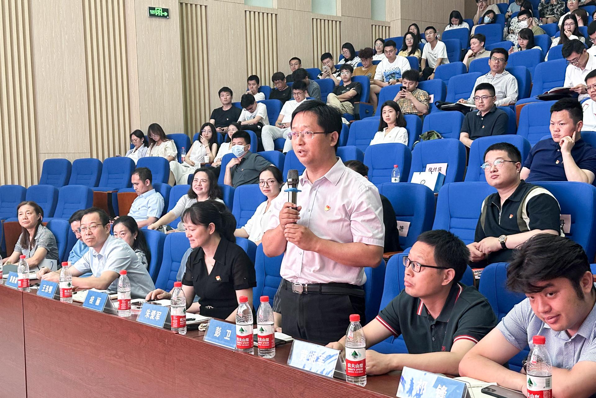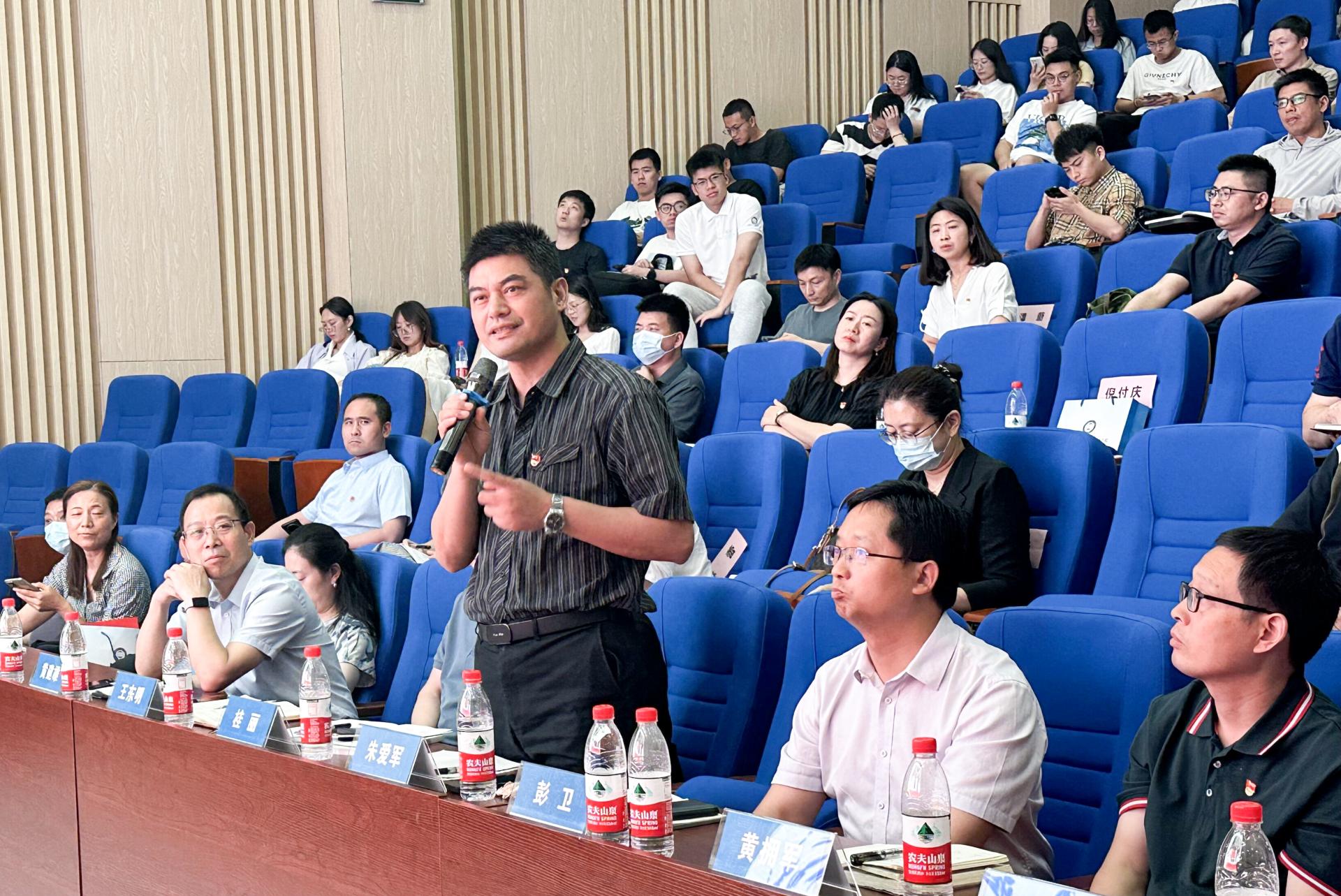 在交流环节,与会人员围绕党建与业务深度融合、吃瓜网 治理体系与治理能力现代化、“张国旗班”建设、课程思政建设等方面进行提问交流,李素矿一一对答。